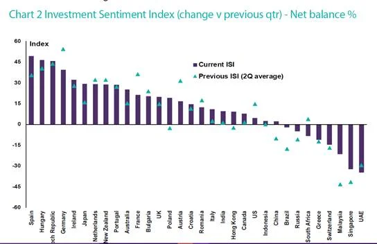 On the other hand, feedback from respondents still remains somewhat cautious in parts of Asia and the Middle East and in the US market, investment enquiries were reportedly flat over the period, marking the first quarter since 2010 in which demand has failed to rise.